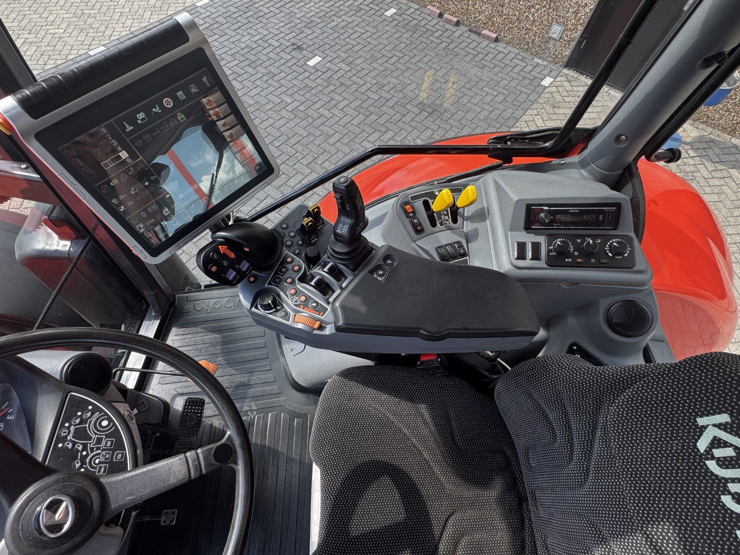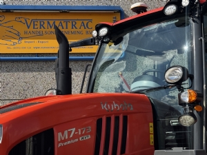 Very tidy Kubota M7-173 KVT, Premium, 2021, 2062 hours, KVT, 4 WD, 50k ECO, braked front axle with suspension, air suspended cab, frontlinkage, hydraulic front service, front operation, front PTO, 6 electric spoolvalves, Power Beyond, 110 ltr/min Hydraulic pump, 540/540E/1000/1000E PTO, joystick, K-Monitor Pro 12””, EHR, ISO bus connection, GPS - RTK, Custom Steer, airbrakes, hydraulic trailerbrake, towbar, hitch, big working lights pack, ””DELUXE”” cabin version, sunroof, climate control, air seat, passenger seat, telescopic mirror, radio, beacon, frontfenders,